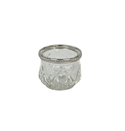 Diamond Etched Silver Rimmed Votive Candle Holder